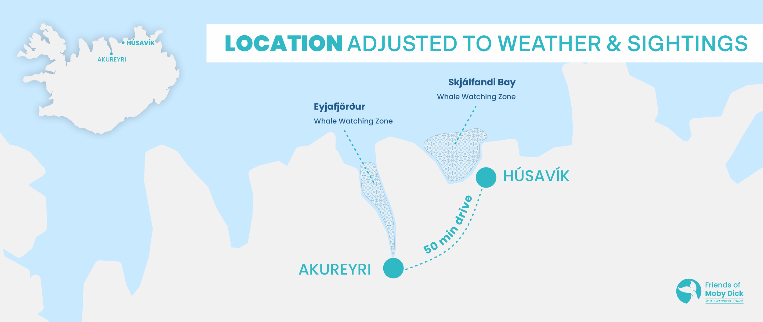 While Húsavík remains our home base, we might occasionally sail from Akureyri, as the mountains in the fjord can sometimes provide more shelter from the wind. The availability in Akureyri is open only if we can confirm wildlife activity in the area at the time, to ensure we continue to offer the best possible experience.